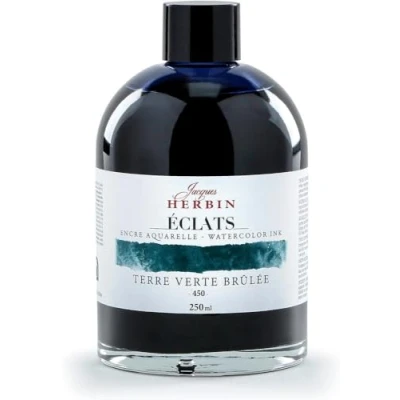 Jacques Herbin 18450TAMZ Fine Arts Watercolor Ink Burnt Green Earth 250ml