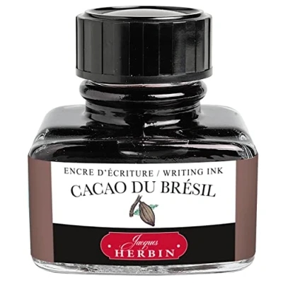 Jacques Herbin Ref 13045T Ink for Fountain Pens & Rollerball Cacao du Brésil / Brazillian Brown Cocoa 30ml Bottle with Integrated Pen Rest Coloured