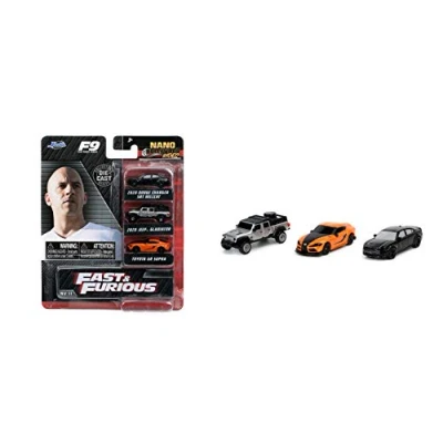 Außenstyling direkt aus dem Film Jedes Nano-Druckguss-Sammelfahrzeug verfügt über einen Körper aus Druckguss und ein Außenstyling, das direkt von der Fast and Furious Franchise übernommen wurde. Sammeln Sie sie alle heute!, Style extérieur directement du film Chaque véhicule de collection moulé sous pression dispose dune carrosserie moulée sous pression et dun style extérieur provenant directement de la franchise Fast and Furious. Collectionnez-les tous aujourdhui !, Stylizacja zewnętrzna bezpośrednio z filmu Każdy pojazd kolekcjonerski z odlewu ciśnieniowego w skali nanoskali posiada odlewany korpus i stylizację na zewnątrz bezpośrednio z serii Szybcy i Wściekli. Zbierz je już dziś!, Exteriör styling direkt från filmen Varje nano-skala gjutet samlarfordon har en formgjuten kropp och yttre styling som tagits direkt från Fast and Furious-serien. Samla dem alla idag!, Authentically licensed product directly from Fast 9, includes 2020 Jeep Gladiator, Toyota GR Supra, and 2020 Dodge Charger SRT Hellcat, Manufacturer: Jada