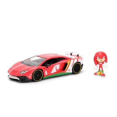 Knuckles-Themed Lamborghini Aventador SV – Bold and vibrant design inspired by SEGA’s iconic Knuckles character, paired with the luxury and power of the Aventador SV. Die-Cast Metal Construction – Crafted with a premium die-cast body for durability and authentic detailing, perfect for collectors and fans. Interactive Features – Opening doors and hood reveal a highly detailed interior and engine bay, adding depth and realism to the display. Knuckles Collectible Figure Included – A striking, dynamic figure of Knuckles accompanies the vehicle, bringing the Sonic universe to life. Jada Toys – Renowned for delivering innovative, officially licensed collectibles with high-quality execution and attention to detail., Manufacturer: JADA
