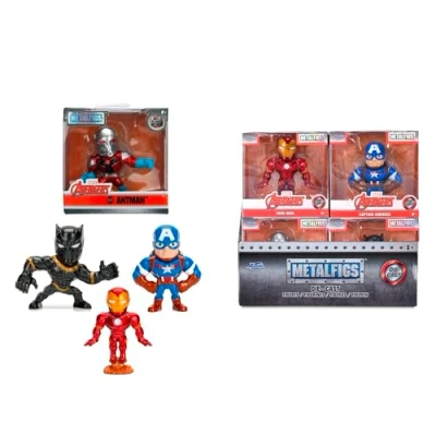 Die-cast, collectible figure, 3 x Iron Man, Captain America, Black Panther, Antman, 12 pieces/display, 6.5 cm, 2.5 inches, WB multi-coloured, Manufacturer: Jada Toys