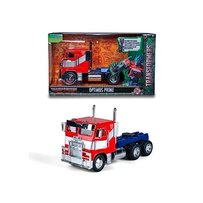 High-quality metal car - This is how you know the popular Transformers character Optimus Prime from the film canvas: As a large "Big Rig" truck in the striking colours red and blue! Optimus Prime Transformers Truck - The leader of the Autobots Optimus Prime also transforms in the 7th "Transformers Rise of the Beasts" film from the powerful robot into the impressive truck. True to the original details - please turn it once: On the underside of the sturdy metal body, the Optimus Prime figure is shown as a robot - a real highlight for fans and collectors! ada Toys - Hollywood model cars for home: As a leading manufacturer of Hollywood action figures and cars, we bring the film heroes to you in the living room as detailed replicas. International products have separate terms, are sold from abroad and may differ from local products, including fit, age ratings, and language of product, labeling or instructions., Manufacturer: Jada Toys