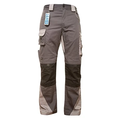 65% polyester, 35% cotton, grey Cordura knee reinforcement + black pocket Knee pad pockets + thigh pocket Belt loops and Velcro fastener, Manufacturer: JAH GmbH