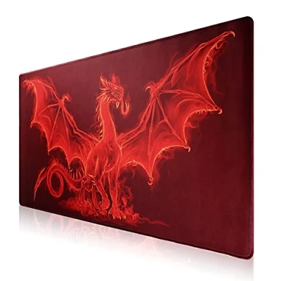 Jahosin Large Gaming Mouse Pad with Stitched Edges,[27.5x11.8In] Extended Non Slip Natural Rubber Base for Gamer/Desktop/Office/Home (70x30 Red dragonus)