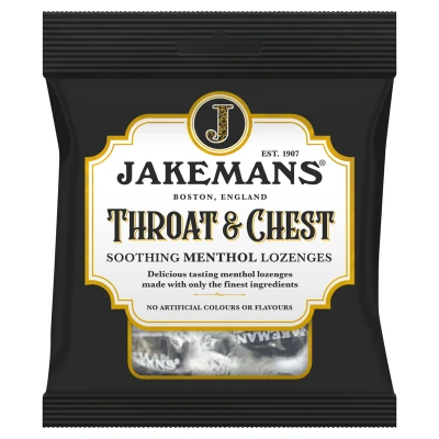 Jakemans Throat&Chest Lozenges (73g) offer a refreshing blend of aniseed, eucalyptus, and menthol for soothing relief and fresh breath. Made with natural ingredients, no artificial additives, and suitable for vegetarians, they provide a healthy, invigorating experience.