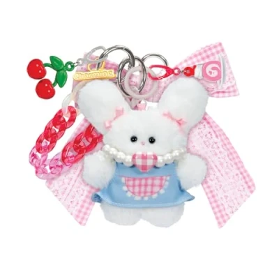 Jakks Pacific Charming Pretty Picnic Bunny Bag Charm, Collectable Charms for Girls, Includes Adorable Plush Character and Accessories to Swap Customise, Collect them All!