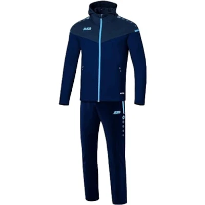 The CHAMP 2.0 presentation suit with hood consists of the CHAMP 2.0 hooded jacket and the competition 2.0 presentation trousers that match the top. Performance label. Two-tone zip puller. Zip garage. Contrast stripes on the sleeve. Hood Side pockets with zip. Mesh lining. Elastic waistband with drawstring. Jako embroidered logo. Available in children's sizes 128-164 and men's sizes S-4XL and in a fitted women's cut 34-44.