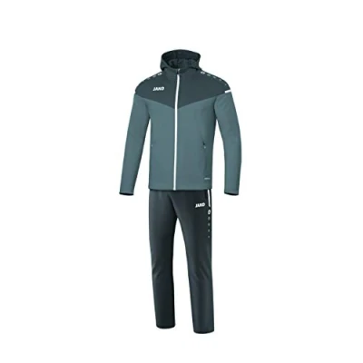 The Champ 2.0 presentation suit with hood consists of the Champ 2.0 hooded jacket and the Competition 2.0 presentation trousers that match the top. Performance label. Two-tone zip puller. Zip garage. Contrast stripes on the sleeve. Hood Side pockets with zip. Mesh lining. Elastic waistband with drawstring. Jako embroidered logo. Available in children's sizes 128-164 and men's sizes S-4XL and in a fitted women's cut 34-44.