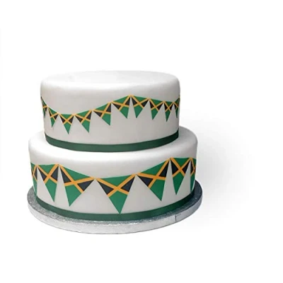 Jamaican Jamaica Caribbean Flag Patterned Bunting Icing Sheet Cake Topper Decoration You will receive bunting toppers as shown in the photo and they require cutting out with sharp scissors. The triangles can then be arranged on your cake to form bunting. Printed with Edible Inks onto an A4 Decor Icing sheet - Large triangles 5cm tall and small triangles 2.5cm tall Great Patriotic bunting for any occasion Decor Sheet Ingredients - E1422,E1412,Maltodextrin,Humec, Manufacturer: Top That