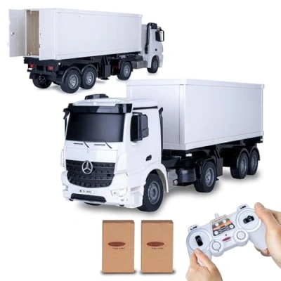 Jamara 405148 Container Truck Mercedes Benz Arocs 1: 20 2, 4 G 2 Speed, Approx. 6 Kph, Up to 30 min Driving Time, Trailer Can Be Coupled and Decoupled Via Remote Control, Detachable