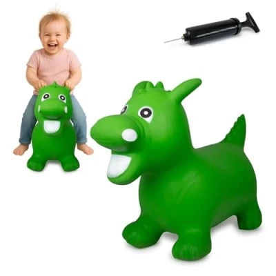 Jamara 460315 Bouncing Animal Dragon green with pump Promotes the sense of balance and motor skills, ears serve as a support for child, Loadable up to 50 kg, Easy care, Robust resistant