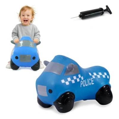 Jamara 460455 Bouncy Car Police Truck with Pump Promotes Balance and Motor Skills, Side Mirrors as Support, Robust, Easy Care, Up To 50 kg