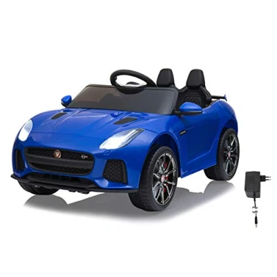 Jamara 460518 Ride On Jaguar F Type SVR 12V 2 Speed Motor and Battery for Long Time, Micro SD, USB AUX Connection, LED Headlight, Illuminated Dashboard, Blue