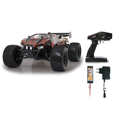 RTR Brushless Motor 3200 KV with up to 40000 rpm Brushless speed controller 60 A actively cooled fully programmable manually or with programming key (optional accessory) 2 Channel 4 wheel drive with steel differentials front and rear 2 4 GHz for multi-player operation LiPo battery in hard case 7 4 V 5000mAh LED headlights Wheelybar enables controlled driving on the rear wheels and protects against rollovers Electronic completely splashproof Double reinforced impact protection Aluminium wishbone reinforcement for stabilization (better distribution of possible impact forces in crash situations) Adjustable High Downforce rear spoiler Aluminum chassis CL3 anodized in titanium design Aluminum chassis reinforcing top Adjustable oil-pressure shock absorber with aluminum shock absorber covers Dirtproof encapsulated transmission unit Drive shaft and wheel axle out of steel Ball bearing mounted wheel axles and drive components Fully adjustable chassis Pivot-Ball front wheel suspension Strong steering servo Finished painted and laminated body, Manufacturer: Jamara