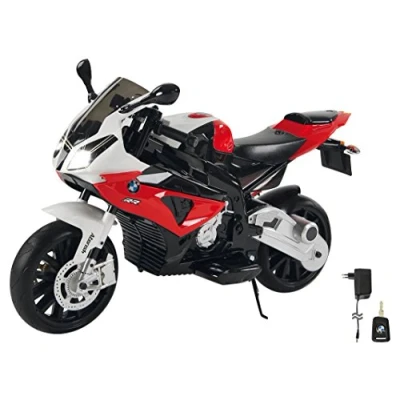 2-speed (slow, fast, Powerful battery for long drive time (up to 90 min) Powerful drive motor Horn and engine sound at start-up LED headlight Key, gas pedal, brake, detachable support wheels and side stand, Manufacturer: Jamara