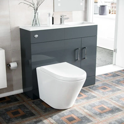 James 1000mm Freestanding Grey Slimline Vanity Basin wc Unit btw Rimless Toilet