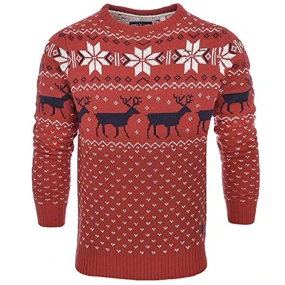 James Derby Mens Christmas Jumper Xmas/Reindeer Stag Nordic Festive Xmas (Red, 2XL)