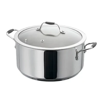 This James Martin 24cm Casserole has a 5 litre capacity.The handles on this casserole are cast stainless steel and feature anti-slip silicone grips for comfort when lifting.The thick 'hot forged' base of this casserole provides even heat distribution and is suitable for all hob types including induction. It is also oven safe up to 180°C.Weight: 1,923g, Height: 18.0cm, Width: 24.0cm, Length: 34.0cmIncluded with this casserole is a vented glass lid which allows you to check on your cooking without removing the lid.James Martin cookware is suitable for dishwasher cleaning and is provided with a Stellar lifetime guarantee.
