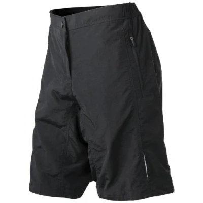 Multi-functional bike shorts Consists of outer woven shorts and extra, elastic inner bike shorts, 2 side pockets with lockable zip, reflective piping on the front trousers, extra inner shorts with ergonomically shaped seat padding, elastic waistband, flat seams, breathable, moisture-regulating and quick-drying