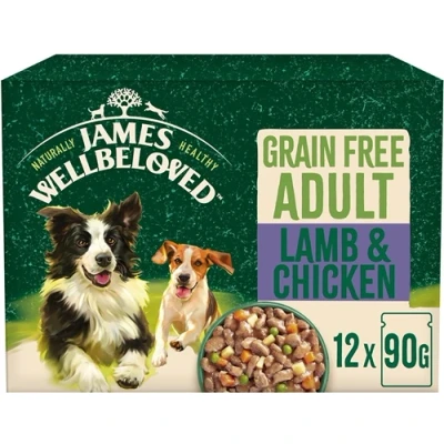 James Wellbeloved Grain Free Adult Dog Food with Lamb and Chicken in Gravy Pouch 12 x 90 g