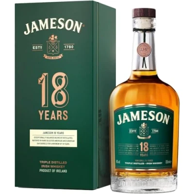 ABOUT JAMESON 18YO IRISH WHISKEY WITH GIFTBOX (70CL): Jameson 18YO Blended Irish Whiskey is a rare, premium whiskey and a blend of two pot-still whiskeys alongside a portion of single grain whiskey. MATURATION PROCESS - Jameson 18yo Irish Whiskey is a unique blend of three signature distillates matured in the finest oak for almost two decades and is given a final marrying period of at least 6 months in a fresh American oak barrel, adding a unique complexity and elegance. TASTING NOTES - Jameson 18yo Irish Whiskey is wonderfully mellow and smooth, a mouthful of complex flavours – toffee, spice, hints of wood and leather, gentle sherry nuttiness and vanilla. RECOMMENDED SERVE - Try this whiskey neat or in signature and classic cocktails as a base. A GIFT FOR ALL OCASSIONS - Jameson 18 Year Old Irish Whiskey is the ideal premium present for any gifting occasion, housed in an wooden box as a tribute to the presence of wood on this whiskey. Ideal present for Father's Day, Christmas, anniversaries, birthdays, Mother’s Day other special occasions AWARD WINNING - Jameson 18yo Irish Whiskey won Silver in the Blended - Ultra Premium Category at the 2023 Irish Whiskey Masters.