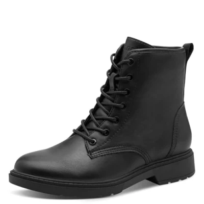 Jana Women's Damen Lace Boot Flat Vegan Fashion, Plain Black, 5 UK