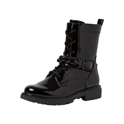 Jana Women's Softline 8 25268 41 Komfortable Mehrweite Bequemschuh Modisch Schnürschuh mit Kette Alltagsschuhe Ankle Boot, Black Patent, 4 UK