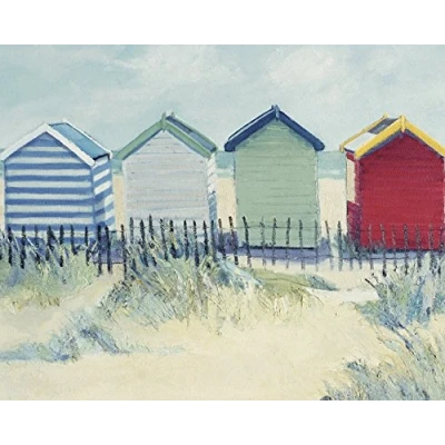Jane Hewlett "Suffolk Beach Huts Digital" Canvas Print, Cotton, Multi Colour, 3.20 x 40.00 50.00 cm