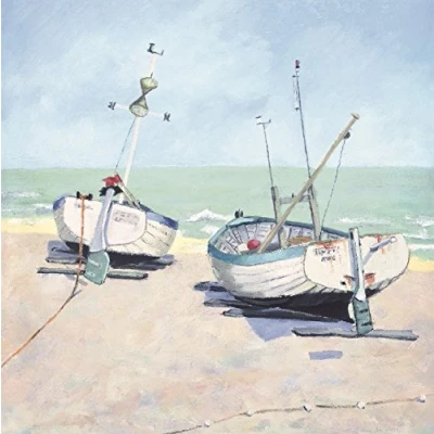 Jane Hewlett "Two Moored Boats Digital" Canvas Print, Cotton, Multi Colour, 3.20 x 40.00 cm