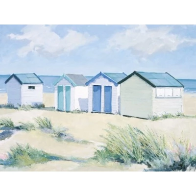 Jane Hewlett WDC22078 Beach Huts on a Bright Day Canvas Print, Multi Colour, 60 x 80 cm