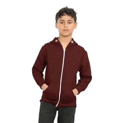 janisramone® Boys Zip up Hoodie, Unisex Plain Long Sleeve Kids Fleece Hoodies, Hoodie and Girls Sweatshirt Jacket Wine
