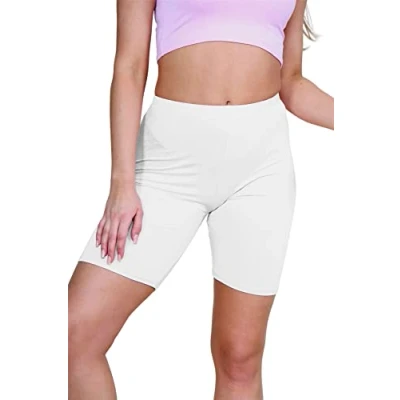 janisramone® Cycling Shorts Women New Plain Stretchy Ladies Shorts, Over Knee Active Gym for Yoga Workout Sports Running Womens White