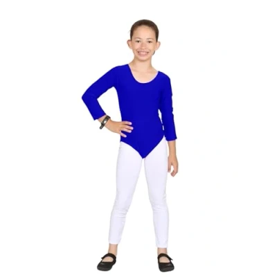janisramone Girls Kids New Long Sleeve Gymnastics Dance Ballet Bodysuit Uniform Leotard Top Age 3 to 14 Years Royal Blue