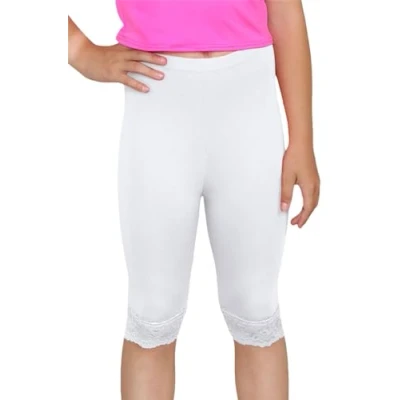 janisramone Girls Kids New Plain Lace Trim Viscose Dance Active Tights Summer Cycling Shorts Hot Pants White