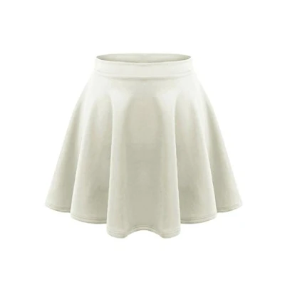 janisramone Kids Girls Children New Plain Flippy Flared High Waistband Stretch Short Mini Skater Skirts Cream