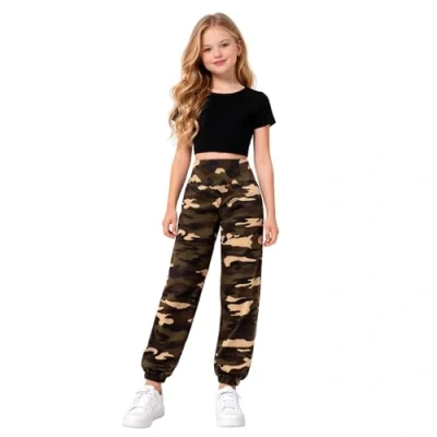 janisramone Kids Girls New Neon Crop Top Army Camo Print Alibaba Harem Leggings 2 Pcs Co ord Dance Sets