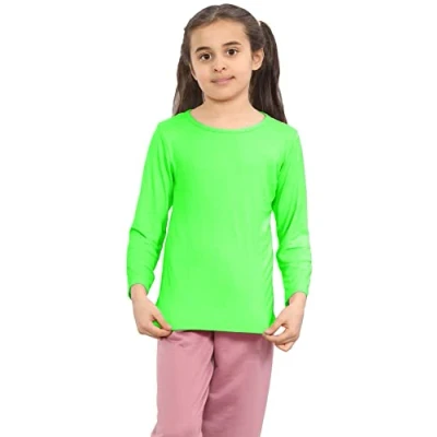 janisramone® Kids T Shirts Casual Boys Long Sleeve Shirt Round Neck Girls School Shirts, Stretchy Comfortable Top Neon Green