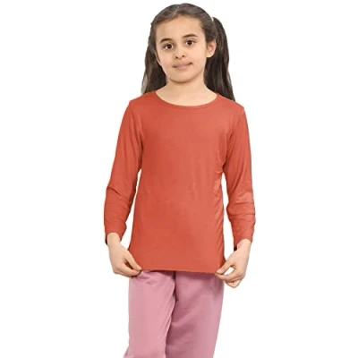 janisramone® Kids T Shirts Casual Boys Long Sleeve Shirt Round Neck Girls School Shirts, Stretchy Comfortable Top Rust
