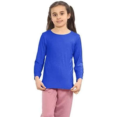 janisramone® Kids T Shirts Casual Girls and Boys Long Sleeve Shirt Round Neck School Shirts, Stretchy & Comfortable Royal Blue