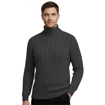 Ultimate Warmth: Stay warm without sacrificing style with this Mens High Polo Roll Neck Jumper, an essential piece among sweaters for men UK. Features a chic roll neck and cable knit pattern, making our high neck jumper men a standout men's jumper for casual and formal settings. Versatile Fashion Staple: A versatile addition to any wardrobe, this knitted jumper can be dressed up or down, perfect for those seeking smart jumpers for men UK. Whether it's for office wear or weekend outings, the mens polo neck jumpers UK fit seamlessly into your existing wardrobe. Easy Maintenance: Designed for the modern man, this jumper for men is easy to care for with its machine-washable material. The mens ribbed jumper and mens chunky knit jumper styles also offer an added texture that resists typical wear and tear. Thermal Protection: Ideal for cooler weather, the thermal jumper mens feature provides additional insulation. The sleek black jumper mens color option offers timeless appeal, while the chunky roll neck jumper men variant keeps you warm and fashionable. Long-Lasting Durability: Crafted from premium 100% acrylic, this mens cable knit jumper combines durability with soft comfort. The roll neck jumpers for men UK design is stylish and also practical, offering a comfortable fit that lasts through repeated washes.