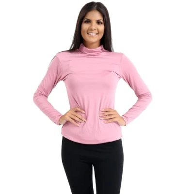 janisramone® Polo Shirts for Women UK, Long Sleeves Turtle Neck Womens Shirt, Stretchy Sleeve Tops s Roll T Shirt Size 8 26 Rose Pink