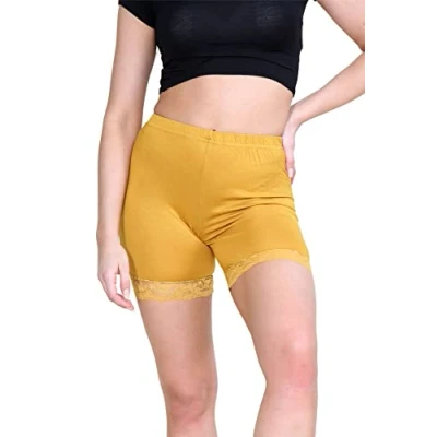 janisramone® Scallop Lace Trim Women's Shorts Active Cycling and Hot Pants Women, Ideal for Gym, Yoga, Running, Summer Sports Mustard