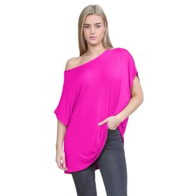 Stylish and Versatile Design: Elevate your wardrobe with off the shoulder tops for women and bardot tops for women UK, perfect for any occasion. Designed with a chic batwing top silhouette, these oversized t shirts for women offer a relaxed and trendy fit. These tops are a perfect addition to your wardrobe of off shoulder t shirts. Flattering Fit: Made with 95% Viscose, 5% Elastane, these baggy t shirts and oversized shirt women ensure all-day comfort. Featuring a one shoulder neck, the off shoulder tops for women UK and womens oversized t shirt offer a flattering yet breathable style. These t shirts are also machine washable for easy care. Perfect for Any Occasion: Transition effortlessly from casual to party wear with red party top and black bardot top options. These batwing tops and off shoulder tops add elegance to your wardrobe. Ideal for pairing with jeans or skirts, the womens off the shoulder top doubles as stylish summer tshirts women. Wide Range: Catering to all body types, these oversized t shirt women are available in sizes XS to 4XL. Choose from classic womens plain t shirts like black or vibrant colors like pink and purple. Whether you prefer baggy shirts for women or fitted styles, these t-shirts offer versatile options. Trendy Wardrobe Essential: Upgrade your basics with these tshirts women UK oversized for a fashionable yet functional look. From womens bardot tops to womens baggy t shirts, enjoy timeless pieces that fit seamlessly into any wardrobe.