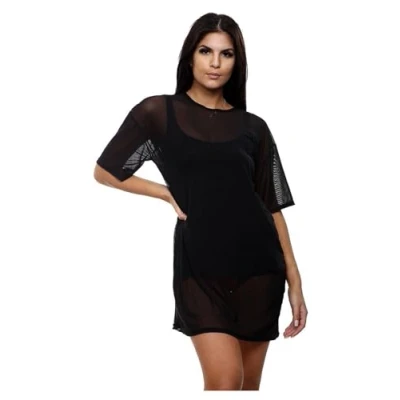 Trendy Mesh Design: This fishnet top woman features a short sleeve, sheer mesh design that adds a stylish and modern touch. It's perfect for layering or wearing on its own, making it a standout among mesh tops for women. High-Quality Fabric: Crafted from 95% Polyester and 5% Elastane, this mesh top offers a soft, stretchy, and comfortable fit. The durable fabric blend ensures long-lasting wear, making it an ideal choice for t shirts for women UK. Versatile Wear: With its oversized, longline fit, this tunic dress can be worn as a t shirt dress, mini top, or layered over leggings. This versatile piece works well for casual outings, lounging, or as a beach cover-up. Comfortable and Relaxed Fit: The round neck and baggy design of this ladies oversized t shirts provide a relaxed and comfortable fit. The 28-inch length offers extra coverage, making it suitable for various body types and styles. Easy to Care For: This sheer top is machine washable, ensuring easy maintenance and long-lasting quality. The material resists wrinkles and retains its shape even after multiple washes, perfect for baggy t shirts for women UK.