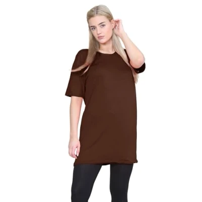 janisramone® Women's T Shirts, Casual Short Sleeve Tops for Women UK Soft & Comfortable Oversized Tunic Baggy Pj Dress Perfect Ladies Summer Brown