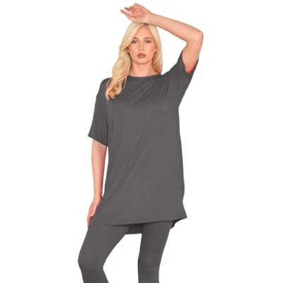 janisramone® Women's T Shirts, Casual Short Sleeve Tops for Women UK Soft & Comfortable Oversized Tunic Baggy Pj Dress Perfect Ladies Summer Charcoal