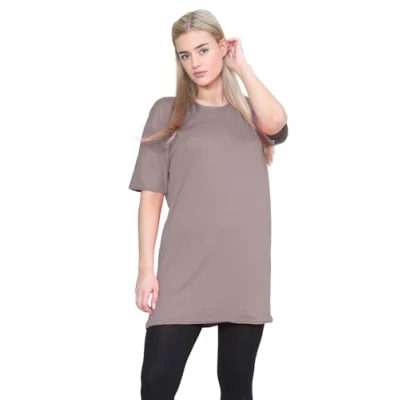 Versatile Summer Essential: This ladies' short sleeve oversized t-shirt tunic top is a must-have for any wardrobe. Perfect for a laid-back day, it offers a chic and comfortable fit that pairs well with any outfit. Premium Fabric Blend: Made from a soft and stretchy blend of 95% Viscose and 5% Elastane, this women's oversized summer t-shirt dress ensures maximum comfort and breathability, keeping you cool and stylish. Easy Care Instructions: This plain oversized summer t-shirt is machine washable, making it easy to maintain and ideal for everyday wear. Effortless Style: Featuring a simple yet elegant round neck design, this longline t-shirt for women offers a classic look that complements any wardrobe. Convenient Pull-On Closure: With its convenient pull-on closure, this oversized t-shirt mini dress is easy to slip on and off, making it a practical choice for busy mornings and relaxed evenings.