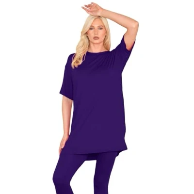 janisramone® Women's T Shirts, Casual Short Sleeve Tops for Women UK Soft & Comfortable Oversized Tunic Baggy Pj Dress Perfect Ladies Summer Purple