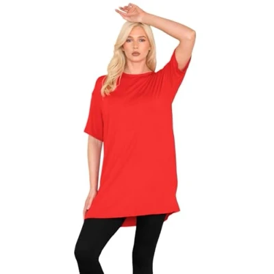 Versatile Summer Essential: This ladies' short sleeve oversized t-shirt tunic top is a must-have for any wardrobe. Perfect for a laid-back day, it offers a chic and comfortable fit that pairs well with any outfit. Premium Fabric Blend: Made from a soft and stretchy blend of 95% Viscose and 5% Elastane, this women's oversized summer t-shirt dress ensures maximum comfort and breathability, keeping you cool and stylish. Easy Care Instructions: This plain oversized summer t-shirt is machine washable, making it easy to maintain and ideal for everyday wear. Effortless Style: Featuring a simple yet elegant round neck design, this longline t-shirt for women offers a classic look that complements any wardrobe. Convenient Pull-On Closure: With its convenient pull-on closure, this oversized t-shirt mini dress is easy to slip on and off, making it a practical choice for busy mornings and relaxed evenings.
