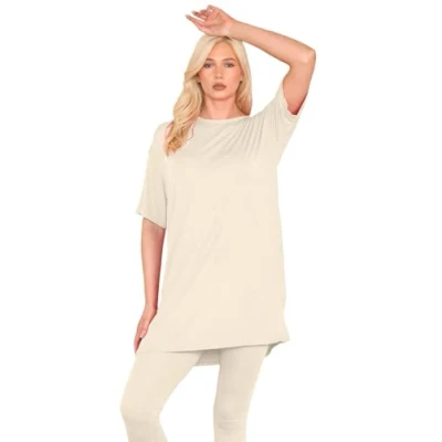 Versatile Summer Essential: This ladies' short sleeve oversized t-shirt tunic top is a must-have for any wardrobe. Perfect for a laid-back day, it offers a chic and comfortable fit that pairs well with any outfit. Premium Fabric Blend: Made from a soft and stretchy blend of 95% Viscose and 5% Elastane, this women's oversized summer t-shirt dress ensures maximum comfort and breathability, keeping you cool and stylish. Easy Care Instructions: This plain oversized summer t-shirt is machine washable, making it easy to maintain and ideal for everyday wear. Effortless Style: Featuring a simple yet elegant round neck design, this longline t-shirt for women offers a classic look that complements any wardrobe. Convenient Pull-On Closure: With its convenient pull-on closure, this oversized t-shirt mini dress is easy to slip on and off, making it a practical choice for busy mornings and relaxed evenings.